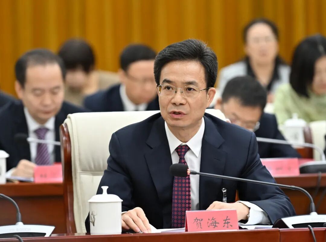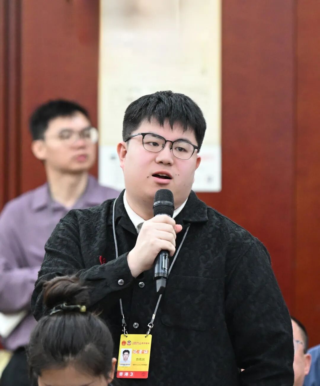 賀海東代表回答香港大公文匯傳媒集團記者提問。