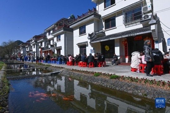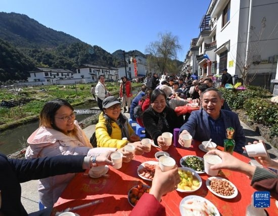 當(dāng)日,上千名游客來(lái)到浙江省建德市蓮花鎮(zhèn)戴家新村民宿一條街,參加鄉(xiāng)村特色百家宴,感受新農(nóng)村“舌尖上的幸?!?。本次鄉(xiāng)村百家宴也標(biāo)志著2023建德市蓮花鎮(zhèn)鄉(xiāng)村民俗旅游文化節(jié)正式開(kāi)啟。