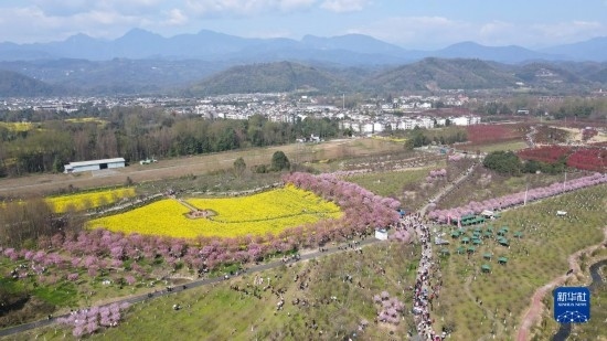 這是3月8日拍攝的都江堰市青城山鎮(zhèn)“問花村”景色(無人機(jī)照片)。