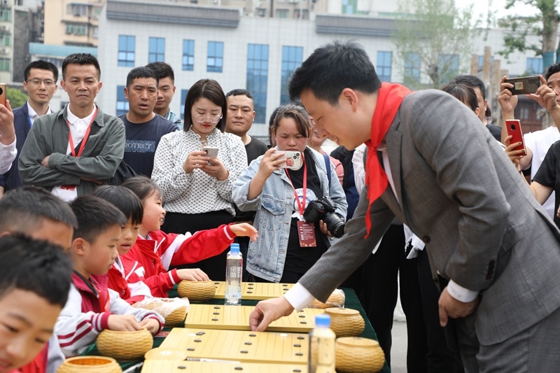 人民網(wǎng)銅仁5月15日電 (記者李乃妍)5月14日,第十屆中國女子圍棋甲級聯(lián)賽希望教室捐贈(zèng)儀式和指導(dǎo)棋活動(dòng)在銅仁市梵凈書院進(jìn)行,中國圍棋協(xié)會(huì)主席林建超等出席活動(dòng)并發(fā)言。世界冠軍古力、孔杰、馬曉春等與當(dāng)?shù)匦∑逋轮笇?dǎo)棋。
