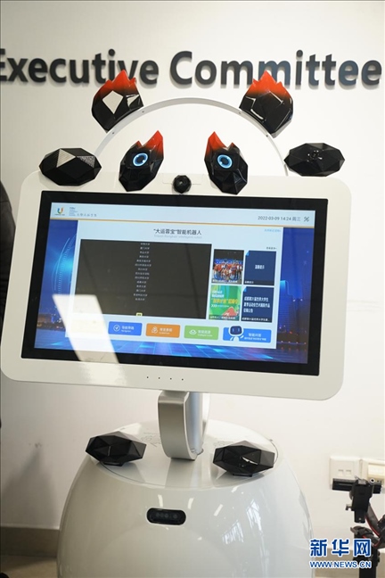 “蓉寶”機器人將作為大運會的特殊“服務(wù)生”。有人臉識別、引導(dǎo)、翻譯等功能,同時還是世界上首款帶有應(yīng)急功能的機器人,內(nèi)部配備了急救包、AED心臟除顫器等醫(yī)療應(yīng)急工具,使用者可通過手機在場館內(nèi)隨時呼叫。圖片來源:新華網(wǎng)