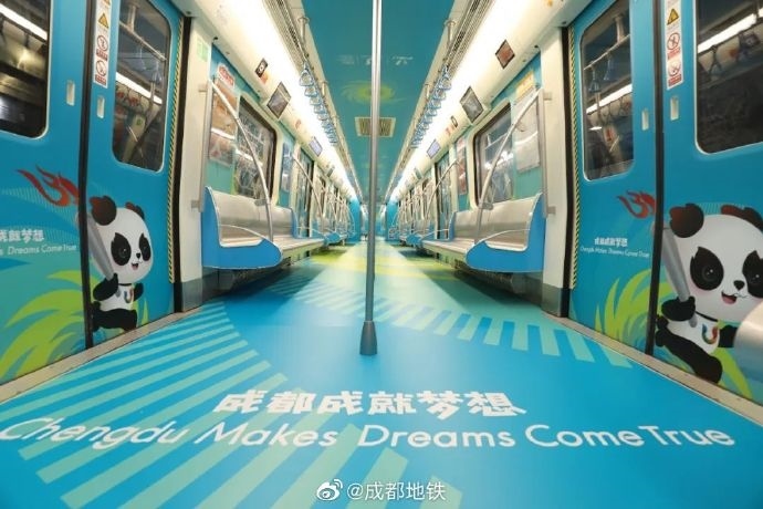 成都地鐵大運會主題列車。圖片來源:成都地鐵官方微博