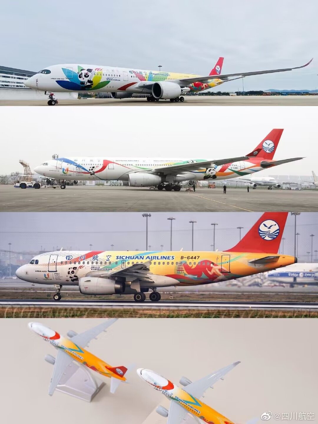 四川航空股份有限公司為成都大運會量身打造的“大運號”主題涂裝飛機。圖片來源:四川航空官方微博