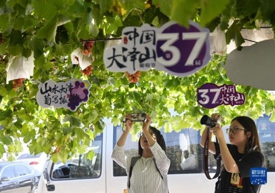 近日,山東省平度市大澤山鎮(zhèn)3.5萬多畝葡萄陸續(xù)成熟,當?shù)嘏e辦的葡萄節(jié)吸引了眾多市民和游客前來采摘和游玩。據(jù)了解,大澤山鎮(zhèn)作為北方重要的葡萄集中種植地之一,擁有葡萄品種300余個,年產(chǎn)葡萄5萬余噸、年產(chǎn)值約7億元。