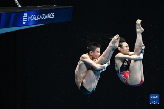 當(dāng)日,在2023年福岡世界游泳錦標(biāo)賽跳水混雙10米臺(tái)決賽中,中國(guó)組合王飛龍/張家齊以總分339.54分的成績(jī)奪得冠軍。