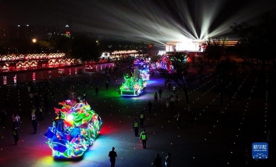 唐大明宮是盛唐時期享有盛名的宮殿群,有著“千宮之宮”的美譽。國慶期間,古風演藝、華服大秀、曲藝匯演、彩車巡游等一系列活動在大明宮國家遺址公園持續(xù)上演。夜幕之下,盛唐文化與現(xiàn)代時尚在此相映生輝,吸引市民游客前來參觀打卡。新華社記者 劉瀟 攝