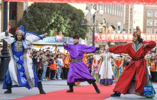 國慶假日期間,新疆烏魯木齊大巴扎步行街舉行的開街儀式吸引了不少游客,別具一格的民族音樂、舞蹈、雜技等,讓游客近距離感受絲路文化。