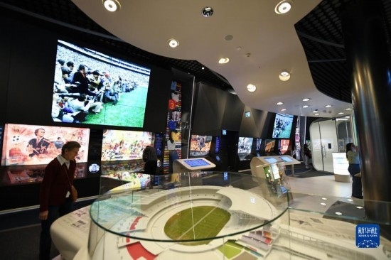 10月12日,在瑞士蘇黎世,人們參觀國際足聯(lián)博物館。新華社記者 連漪 攝