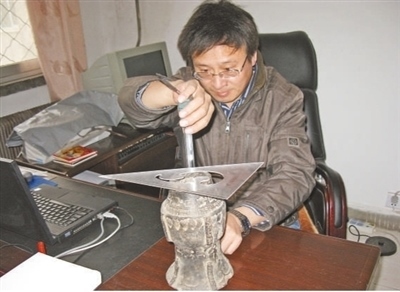 把文物故事講給更多人聽(講述·一輩子一件事) 劉世友在測(cè)量文物。劉世友(左)和同事在查閱資料。以......