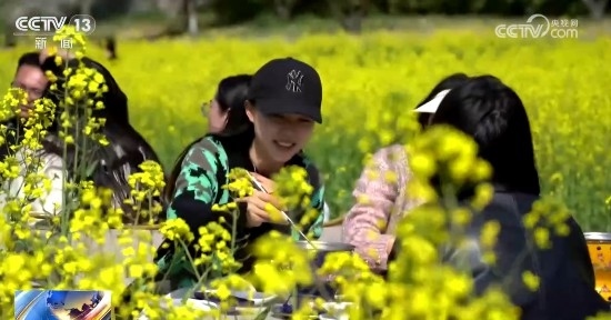 在宜昌市夷陵區(qū),這片油菜花田依山傍水,村居散落其中,構成一幅優(yōu)美的田園畫卷。中午時分,一場小型音樂會在油菜花田中拉開帷幕,旋律與花海邂逅,如同大珠小珠落玉盤,叮叮當當,又如泉水叮咚般悅耳。游客置身其間,吃著火鍋、品著咖啡,一切煩擾都被洗滌殆盡。
