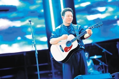 中國音樂人許巍在音樂節(jié)表演