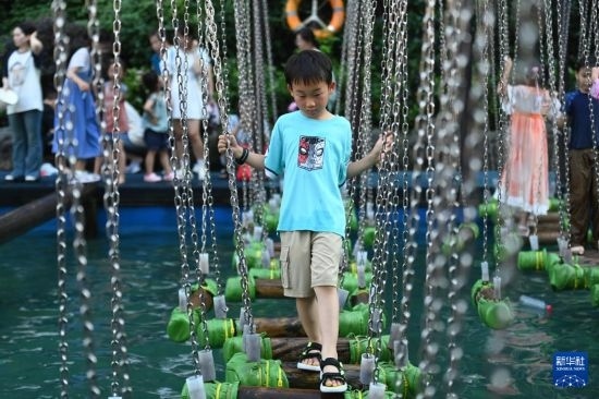 7月5日,小朋友在杭州宋城景區(qū)戲水。