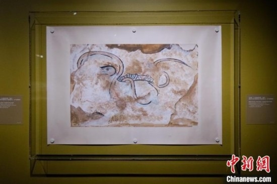 當(dāng)?shù)貢r間9月4日,百余件遼寧三燕文物亮相紐約華美協(xié)進(jìn)社中國美術(shù)館秋季特展《龍城之金:遼寧三燕文物選萃,337-436》。圖為展出的玄武圖摹本。 中新社記者 王帆 攝