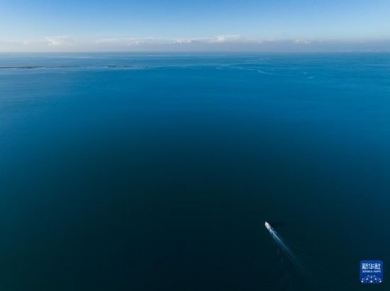 10月18日,一艘游輪行駛在青海湖二郎劍景區(qū)(無人機(jī)照片)。