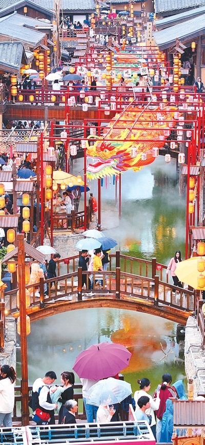 龍門浩老街上,幾名外地游客沿著青石臺階漫步至老街最高點——攬月臺,遠眺渝中半島。這條位于重慶市南岸區(qū)南濱路中段的老街,面朝長江,背依南山,開埠文化、巴渝文化等文化底蘊深厚。近年來,經(jīng)過保護與修繕,這里不僅恢復了歷史風貌,還增添了現(xiàn)代時尚氣息。古色古香的街道兩旁,新潮的商鋪、餐館和咖啡館為市民游客休閑購物提供便利和全新體驗。“感受時光交錯的美妙”,成為這里的一大魅力。數(shù)據(jù)顯示,自發(fā)展全域旅游以來,龍門浩老街所在的龍門浩街道已接待游客近4000萬人次,實現(xiàn)旅游收入276.8億元,龍門浩老街還成功創(chuàng)建第二批國家級夜間文旅消費聚集區(qū)。