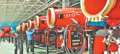 卡賓滑雪裝備制造有限公司員工在裝配造雪機。