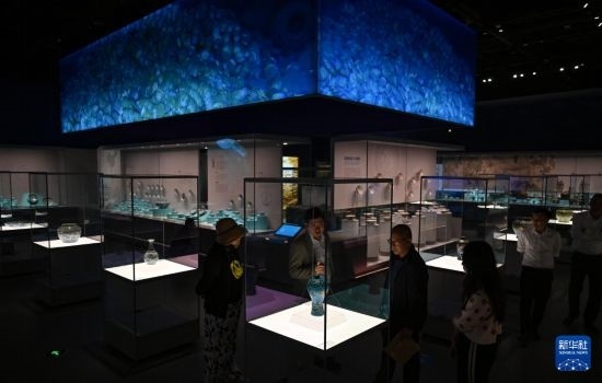 3月20日,游客在位于瓊海的中國(海南)南海博物館參觀南海西北陸坡一二號(hào)沉船考古成果特展。