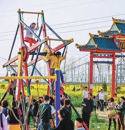 游客在司家村體驗(yàn)特色秋千。
