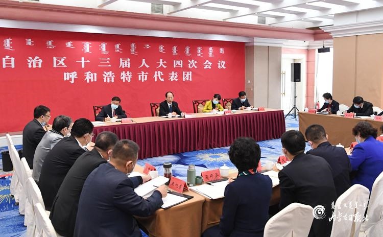 呼和浩特市代表團氣氛熱烈,討論活躍。張佰成、阿拉坦倉、云霖瓊、梁永、盧敏放等5位代表踴躍發(fā)言,并結(jié)合各自工作實際,分別就發(fā)揮首府龍頭帶動作用、鑄牢中華民族共同體意識、鞏固脫貧成果接續(xù)鄉(xiāng)村振興、深化教育改革、振興奶業(yè)發(fā)展等提出意見和建議。石泰峰認真聽取代表們發(fā)言,不時就有關(guān)問題與大家進行深入交流。