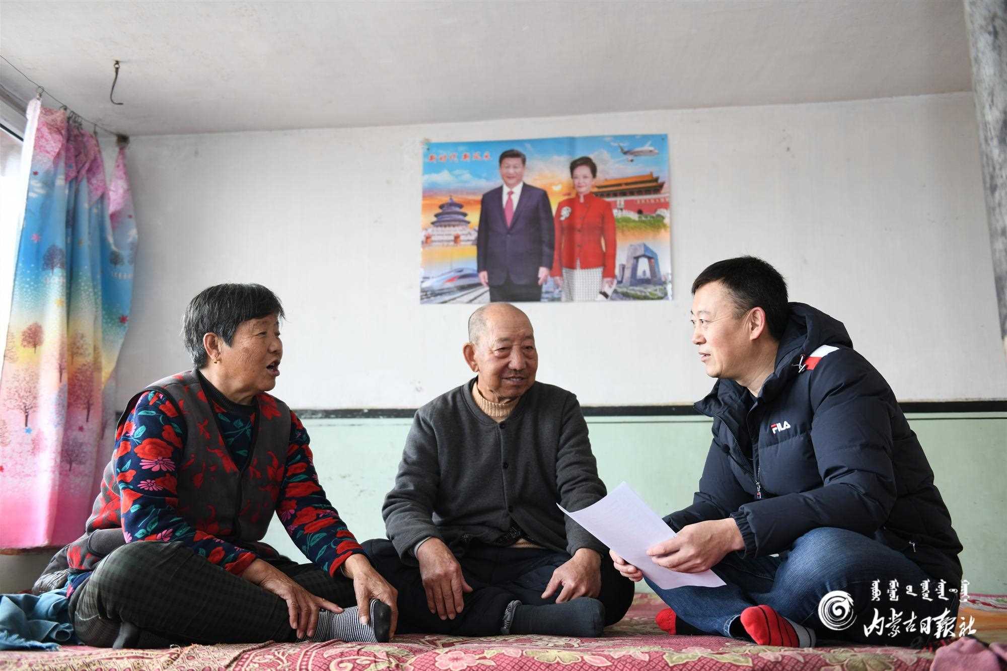扎賚特旗音德爾鎮(zhèn)全吉嘎查駐村第一書記伊六十一深入貧困戶家中了解情況。