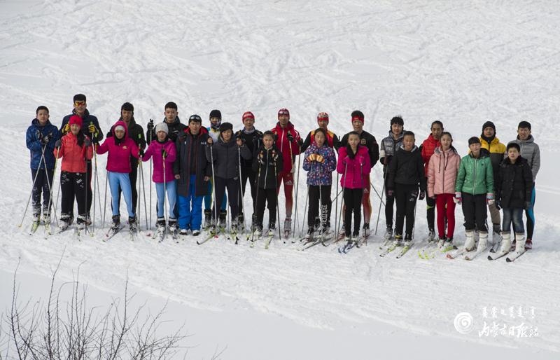 劉東雨帶領(lǐng)下的牙克石市第一中學(xué)滑雪隊。