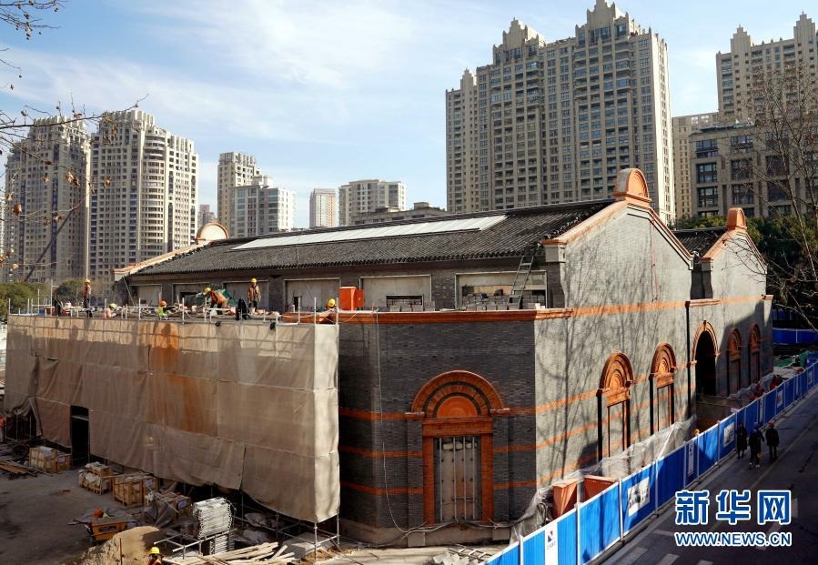 這是正在施工中的中共一大紀念館(1月14日攝)。新的基本陳列展廳建筑面積約3700平方米,將展出各類展品超1000件,其中實物展品600余件。新華社記者 劉穎 攝