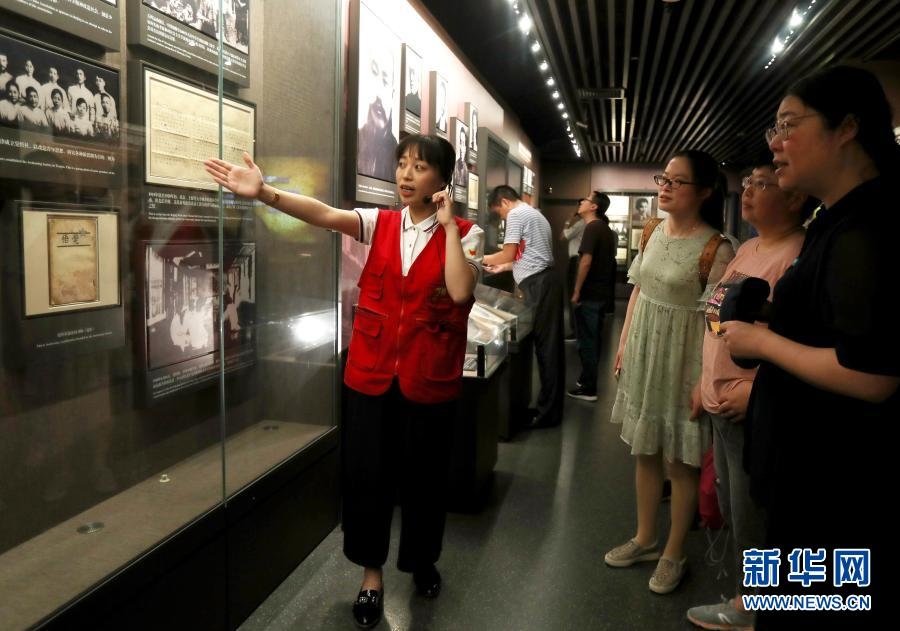 1月20日,“黨的誕生地”志愿服務(wù)隊隊員、上海大學(xué)的學(xué)生在中共一大會址紀念館為觀眾進行講解(2019年6月22日攝)。新華社記者 劉穎 攝