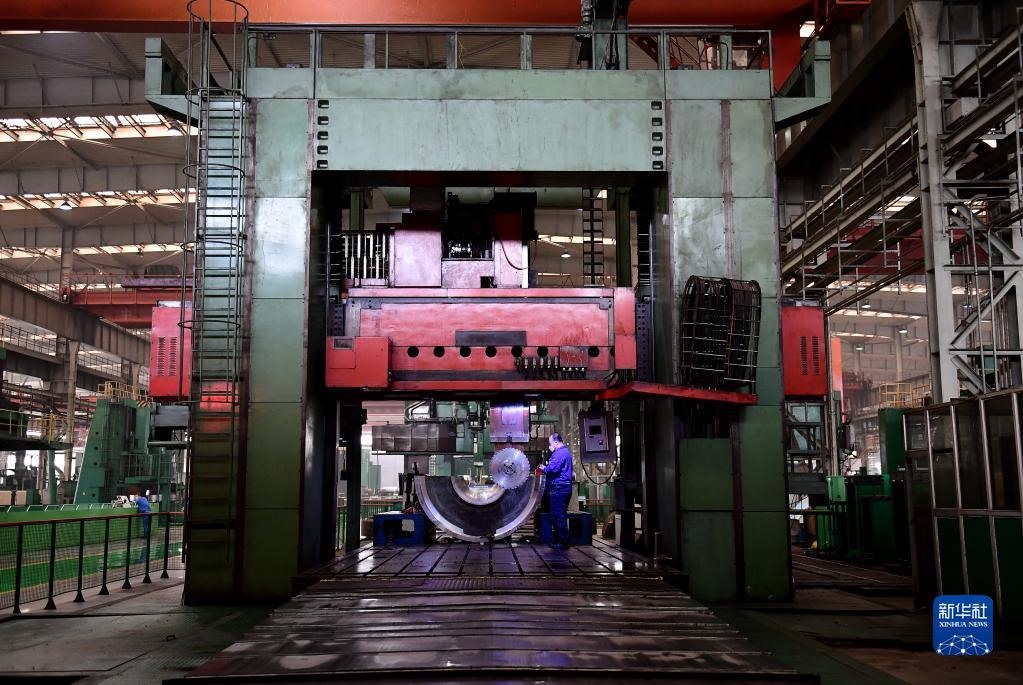 2020年3月16日,在沈陽鼓風(fēng)機集團股份有限公司生產(chǎn)車間,工人操作機器加工產(chǎn)品內(nèi)機殼。新華社記者 楊青 攝