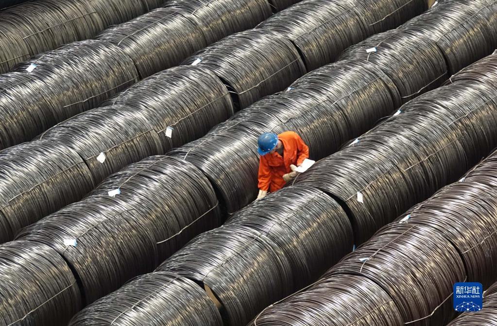 2017年5月15日,東北特鋼集團工作人員在核對入庫的合金鋼大盤重線材產(chǎn)品標識。新華社發(fā)(劉德斌 攝)