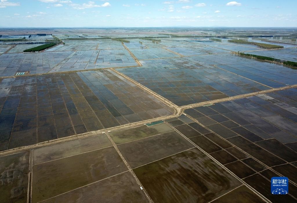 這是5月18日拍攝的北大荒集團(tuán)七星農(nóng)場有限公司的稻田(無人機(jī)照片)。新華社記者 王建威 攝