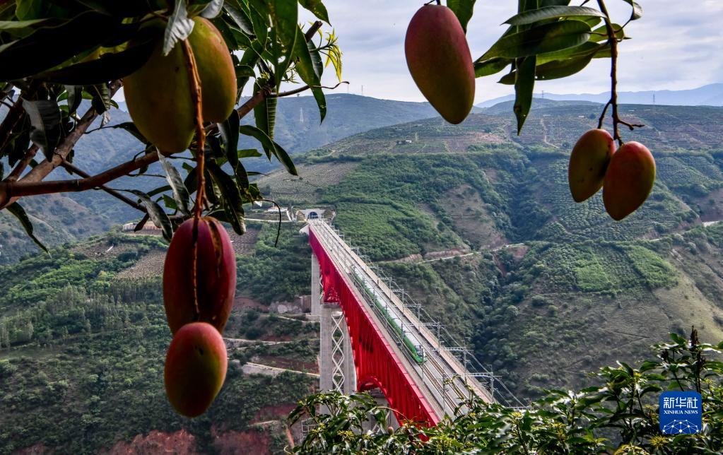 復(fù)興號(hào)列車(chē)通過(guò)中老鐵路元江特大橋(6月1日攝)。新華社記者 江文耀 攝