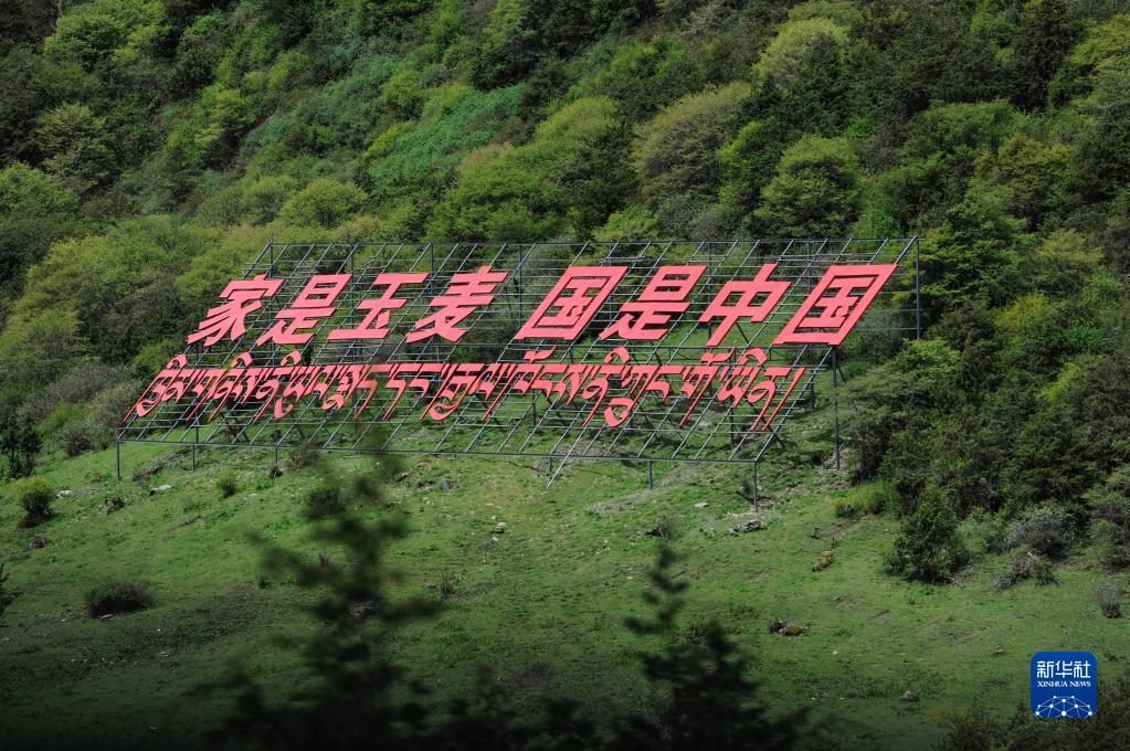 玉麥鄉(xiāng)山坡上的標(biāo)語(6月1日攝)。新華社記者 張汝鋒 攝