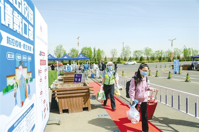 當(dāng)日一早,內(nèi)蒙古師范大學(xué)盛樂(lè)校區(qū)的教職工按照疫情防控等有關(guān)部門(mén)的規(guī)定和要求,統(tǒng)一進(jìn)行接站、入校、消殺、掃碼等一系列程序,以保學(xué)生安全返校。