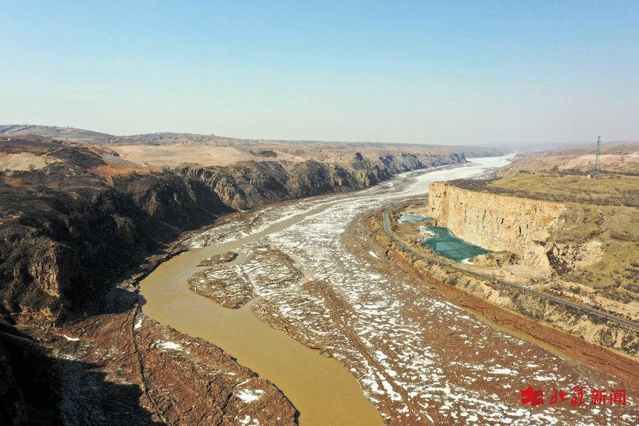 黃河呼和浩特段即將開河 俯瞰冰面碧綠如玉相當壯觀